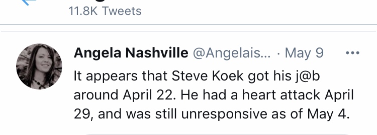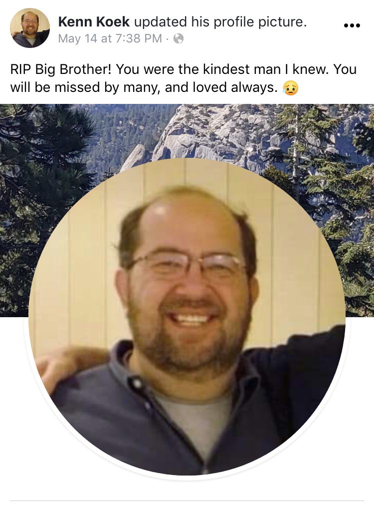 On May 14, 2021 Ken Koek, Steve’s brother, posted the following on Facebook: