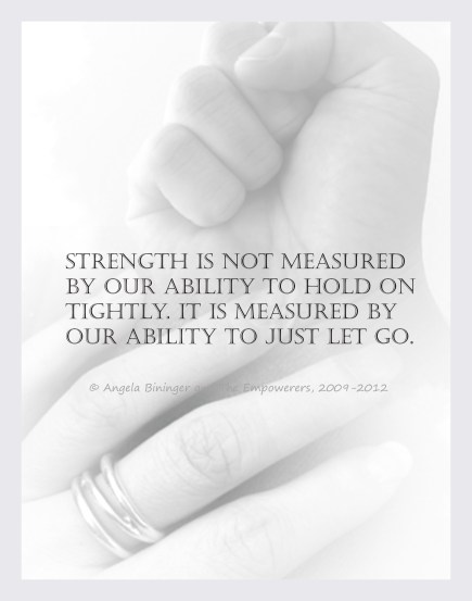 Strength is often revealed by one’s ability to let go. When we let go of things that weigh us down or that prohibit joy…..we find happiness.