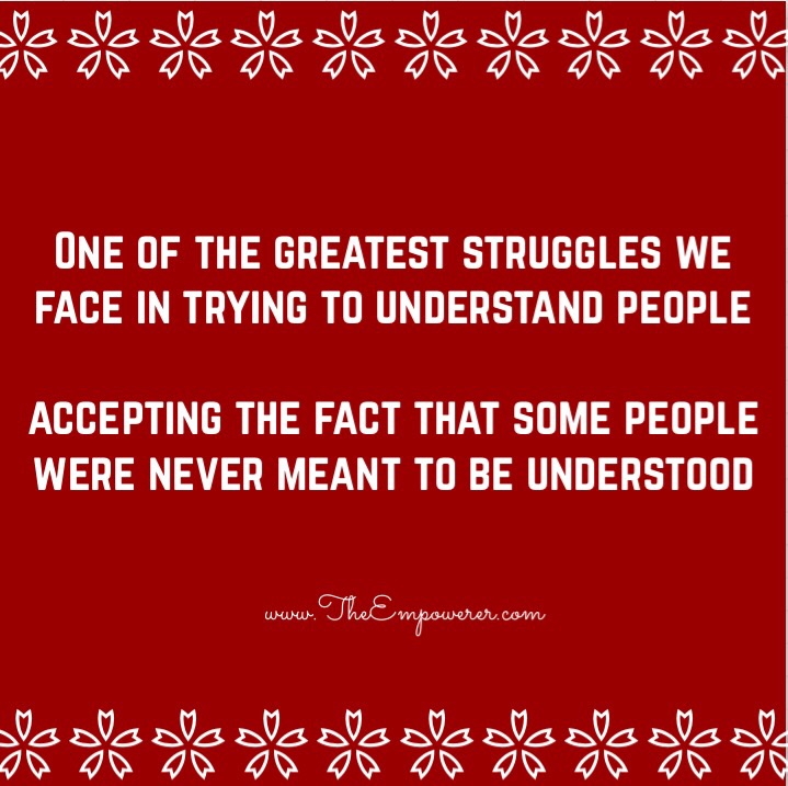 We spend a lot of time worrying, wondering, questioning, and trying to understand people. We wonder how, why, and what pulled the trigger that took them to the dark side. Perhaps it is time to stop trying to understand everyone that we meet. Sometimes we are not suppose to figure them out. There are some things we are not suppose to understand.