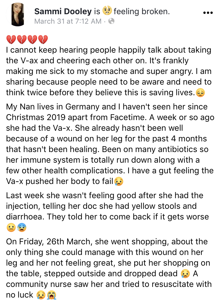“The State of Maryland is at odds with Brenda’s Primary Care Physician (PCP) regarding the cause of Brenda’s death. Currently the state is ruling her death due to natural causes whereas her PCP is adamant that Brenda’s medical history should have not resulted in her sudden an unexpected death. The fact is that Brenda died less than 24 hours after her 2nd Moderna vaccination for COVID-19 and the state is denying that there is a connection.”