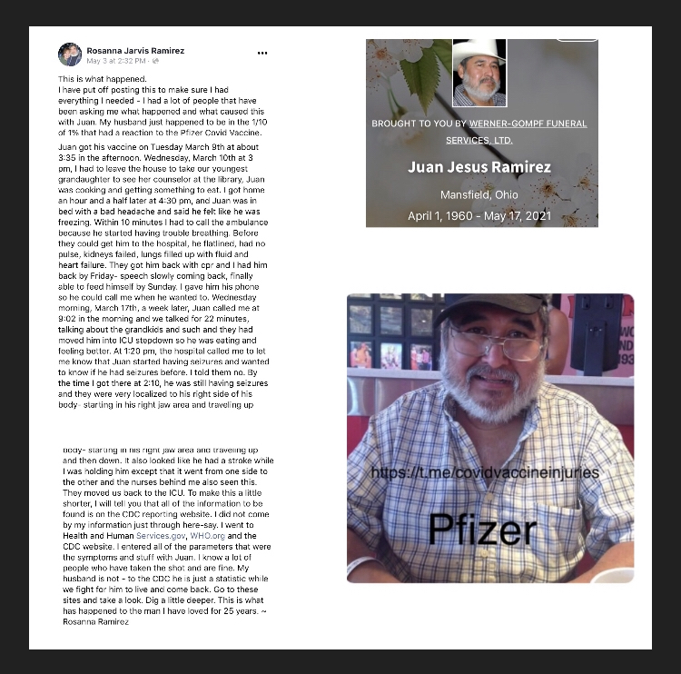 Not long after the shot Iona Sellers, Robin’s mother, had requested prayers for Robin online and stated “Robin had a reaction from the covid shot”. Robin was not breathing and was on a ventilator in ICU according to her mother.