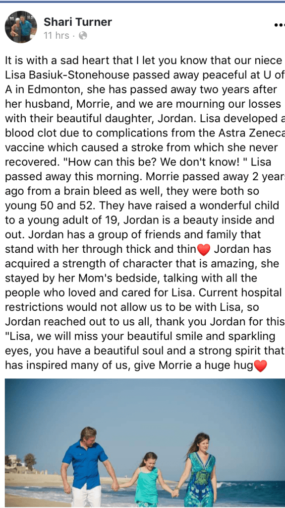 Our thoughts are with Masako and her family during this difficult time. There are many tragic stories being shared about these vaccines. Unfortunately, many families are being silenced.
