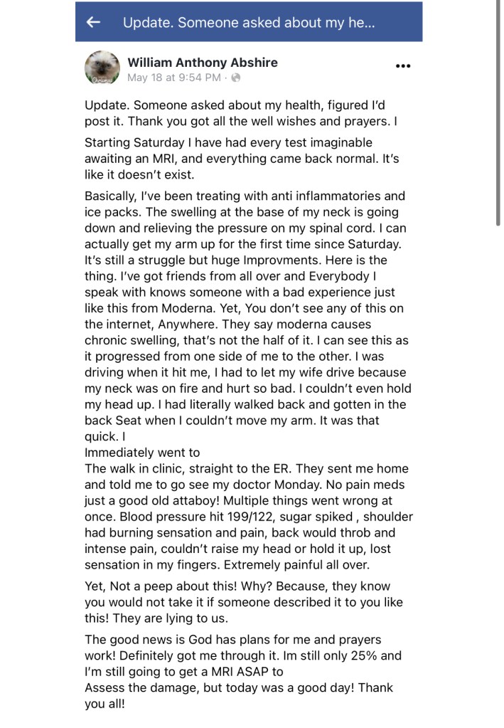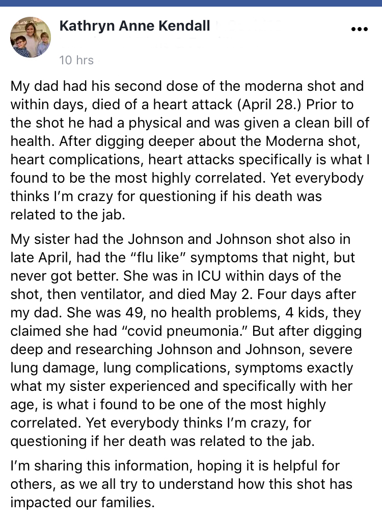 Kyle McFarland also passed away. It is uncertain if Kyle had one dose or two, but like Tony, he also passed away at home.